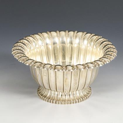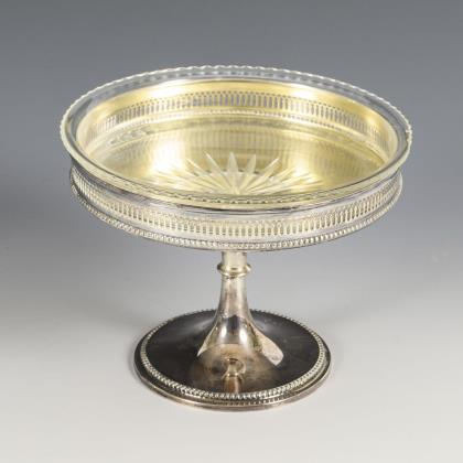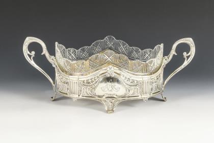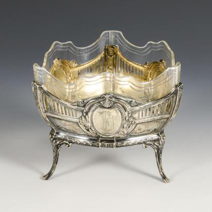 Große Silberjardiniere mit Glaseinsatz. Gebrüder Kühn, Schwäbisch Gmünd.