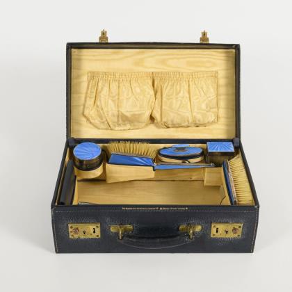 Englisches Toiletten-Köfferchen mit Silberutensilien. The Goldsmiths & Silversmiths Company Ltd.