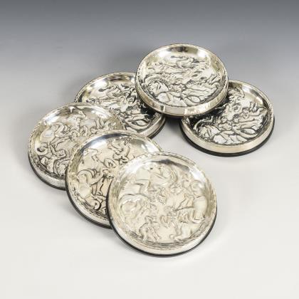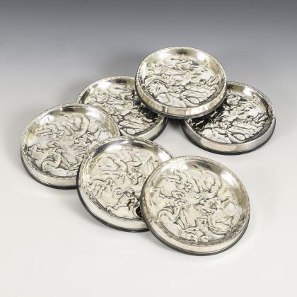 Silberne Nuss- oder Konfektteller mit mythologischen Szenen
