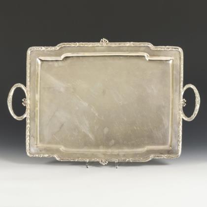 Schweres Tablett mit Lorbeerrand und 2 Griffen, im Stil des Klassizismus