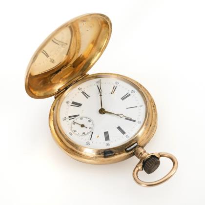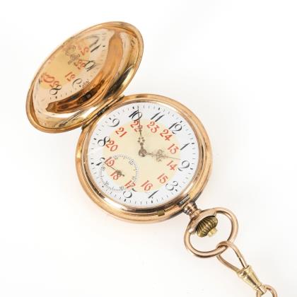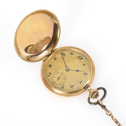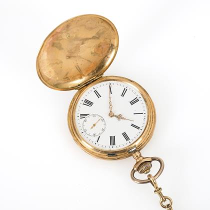 Goldene Savonnette mit goldener Uhrenkette.. Dürrstein & Co.