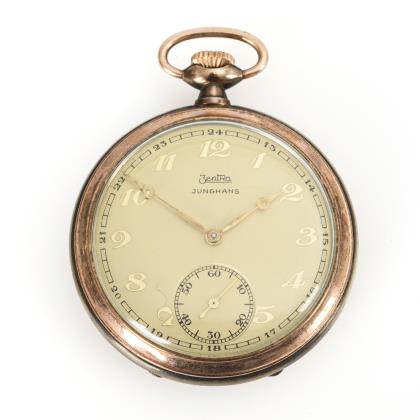 Silberne Art-déco-Taschenuhr.. Junghans/ZentRa.