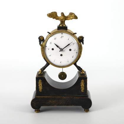 Klassizistische Tischuhr mit Adlerbekrönung.