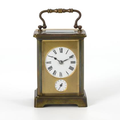 5-seitig facettiert verglastes Messing-Gehäuse mit geschweiftem Bügelgriff