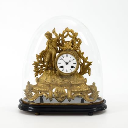 Figurenpendule mit Winzer unter Glasdom.. Japy Frères & Cie.