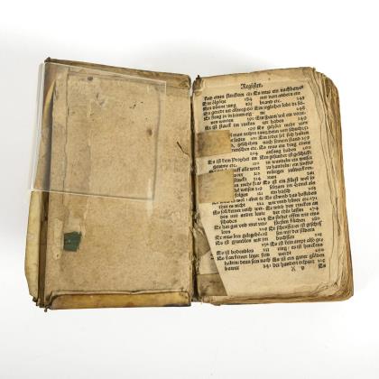 Im zweiten Teil fehlen 16 Seiten und sind durch Leerseiten ersetzt. Im Pappeinband des 18. Jahrhunderts