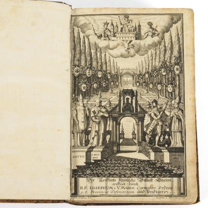 (23 inklusive Titelblatt), (8), 102, (8), 99, (8), 115, (8), 208, (12), 109, (14), 92, (12), 79, (8), 86, (18), 50, (5) Seiten. Mit diversen Titelseiten und Holzschnitt-Initialen. Im geprägten Ledereinband mit Metallecken