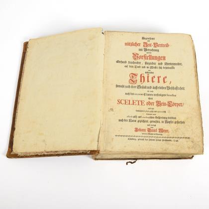 Titelblatt mit kleinem Kupferstich, (16), 186, 341 Seiten, im Halbledereinband mit Rotschnitt. Verfasser eines Gedichtes im Vorwort Dusch, wohl Johann Joachim Dusch, eventuell auch Verfasser des Werkes