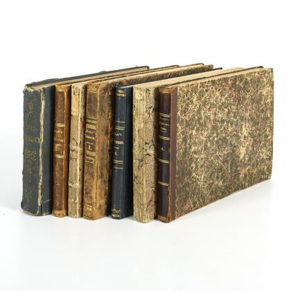 Vollständig mit 80 Karten, grenzkolorierte Stahlstiche, im Halbledereinband. Handschriftliches Inhaltsverzeichnis