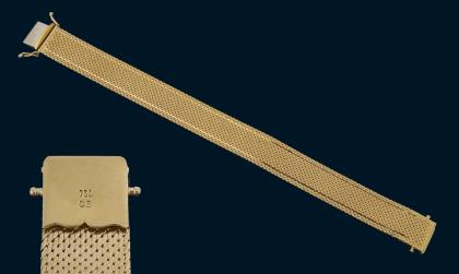 Feines Milanaiseband, Kastenschließe mit zwei Ösen, Punzen: Feingehalt, Juweliermarke CB