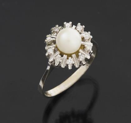 Brosche um 1870 mit halber Saatperle und Diamanten.