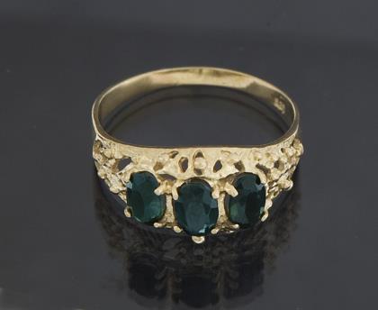 3 facettierte ovale Dioptase, wegen der tiefgrünen Färbung oft auch als Kupfersmaragd bezeichnet. Durchbrochen gearbeitet, stabile Schiene, Punzen: Feingehalt
