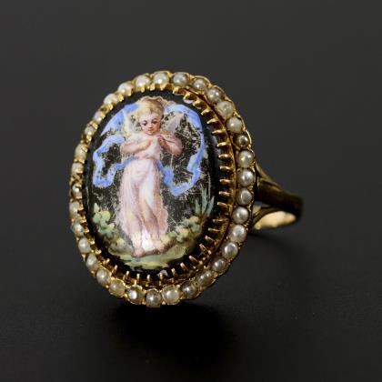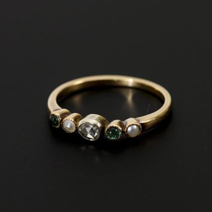 Gold-Email-Ring mit weißem Saphir und Diamanten. Victor Mayer, Pforzheim.