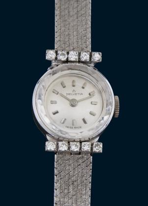 Gold-Armbanduhr mit Diamanten. Helvetia, Schweiz.