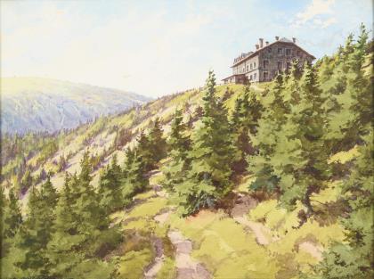 KARGER, Josef (1901 Aloisov/Tschechien - 1963 Freiburg). Sonnige Gebirgslandschaft.