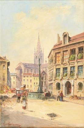 KAUFMANN, Karl (1843 Neuplachowitz - 1905 Wien). Altstadt mit Kirche.