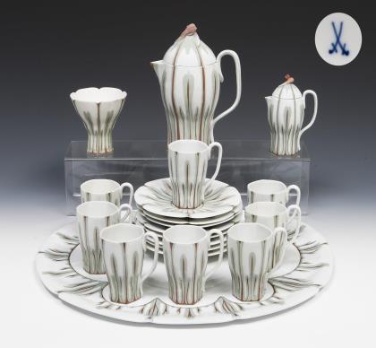 Kaffeeservice mit Weinlaubdekor. Meissen.