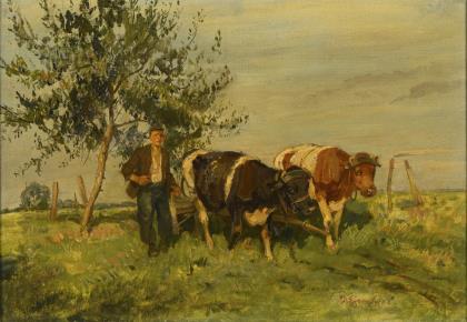 HENTSCHEL. Bauer mit Ochsenkarren.