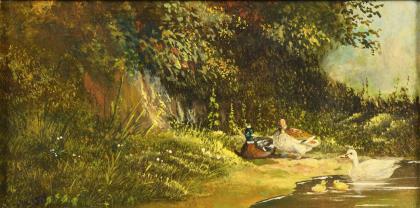 MÜLLER, Adolf (* 1853 München). Fütterung der Gänse.