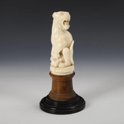 Elfenbeinschnitzerei: Sitzender Löwe.