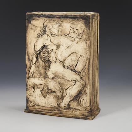 Hochrechteckige Quadervase, auf beiden Schauseiten mit abstrakten Liebespaaren figural reliefiert