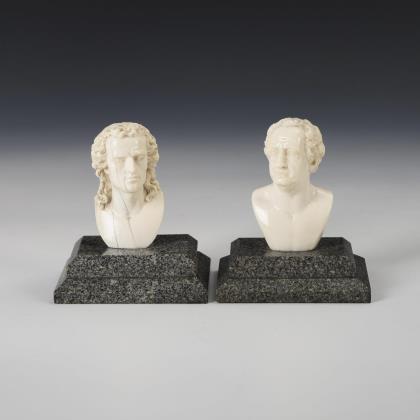 SCHRÖDL, Norbert Michael (1816 Schwechat bei Wien - 1890 Dresden). Pendants Elfenbeinbüsten: Goethe und Schiller.