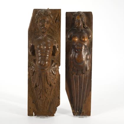 2 Renaissance(?)-Reliefs: Männliche und weibliche Herme.