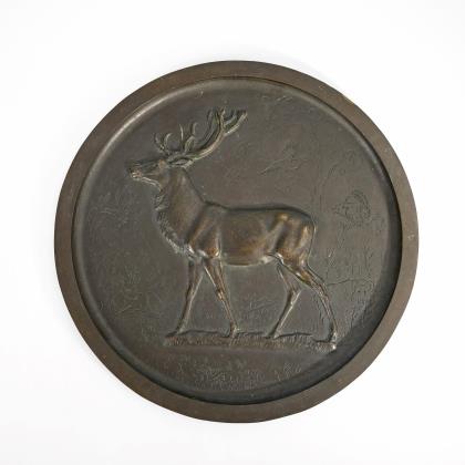 OEHME, Erich (1898 Berthelsdorf/Freiberg - 1970 Meißen). Wandteller Bronze mit Hirsch.