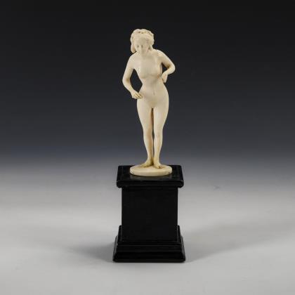 Elfenbeinschnitzerei: Stehender Frauenakt (Eva?).