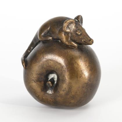 Den Apfel besetzende Maus. Seine Werke (häufig Brunnen im öffentlichen Raum) signierte er oft mit mindestens einer figürlichen Maus