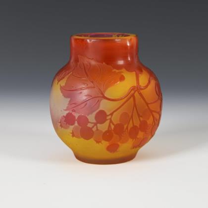 Jugendstil-Vase mit Elsbeerendekor. Gallé.