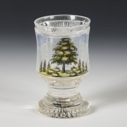 Biedermeier-Glas mit Stammbaum.