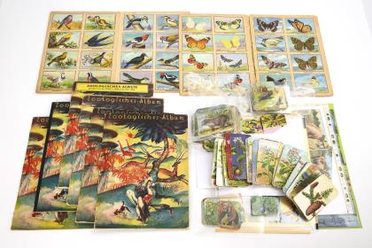 Zoologische Alben und lose Glanzbilder mit Tiermotiven.