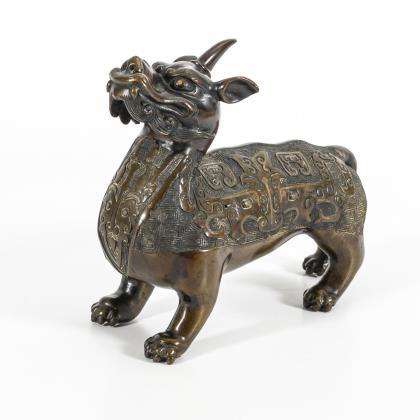 Kirin oder Quilin, in schöner Ausführung. Korpus mit flachem Reliefornament verziert