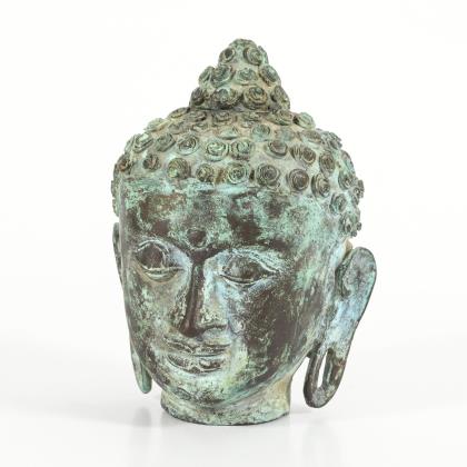 Kopf mit schöner Patina und langen Löchern in den Ohrläppchen