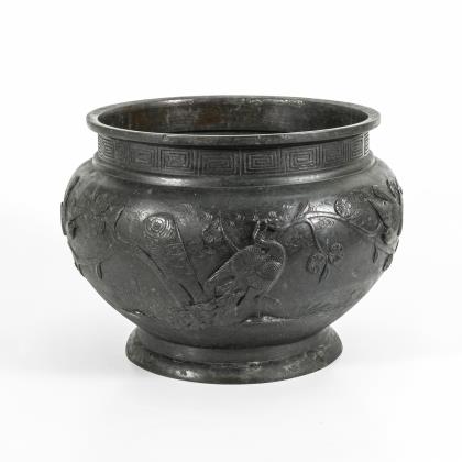 Wohl Blumengefäß mit Vogelrelief und umlaufendem Mäanderband