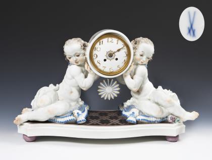 Art déco-Uhrgehäuse mit Amoretten. Meissen.
