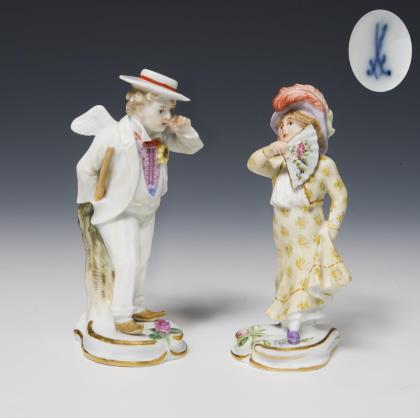 Paar Miniaturfiguren: Amorette als Gigerl, Amorette als Kokette. Meissen | Update.