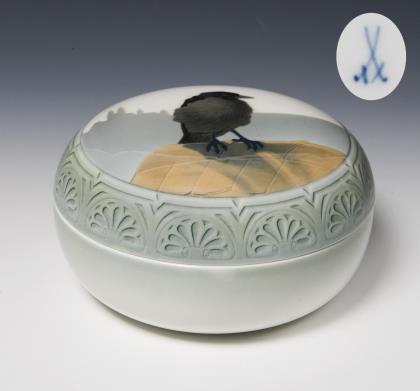 Jugendstil-Dose: Ente im Flug. Meissen.