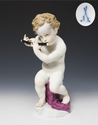 Amorette mit Flöte. Meissen.