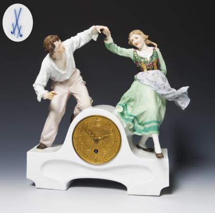 Jugendstil-Uhrgehäuse mit Tanzpaar. Meissen.
