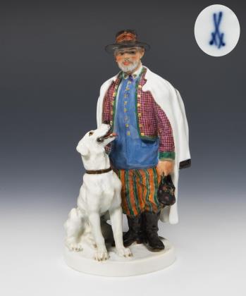 Seltene Figurengruppe: Pole mit Hund. Meissen.