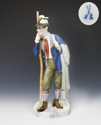 Jugendstil-Figur: Bergsteiger mit Stock. Meissen.