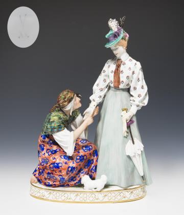 Jugendstil-Figurengruppe: Die Wahrsagerin. Meissen.