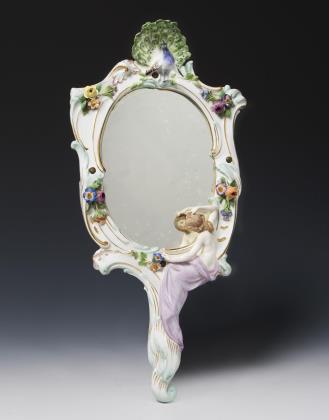 Jugendstil-Handspiegel: Juno mit Pfau. Meissen.