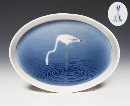 Jugendstil-Plateau: Flamingo. Meissen.