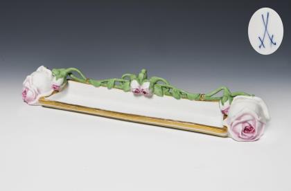 Jugendstil-Hutnadelschale mit plastischen Rosen. Meissen.