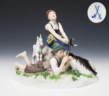 Jugendstil-Figurengruppe: Bacchantin mit Faun und Ziegenbock. Meissen | Update.