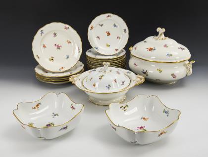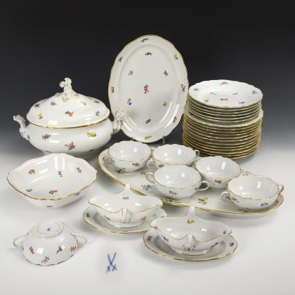 Speiseservice mit Streublümchenmalerei. Meissen.