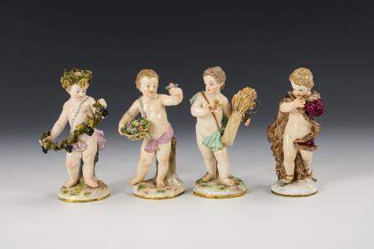 4 Puttenfiguren als Jahreszeitenallegorien. Meissen.